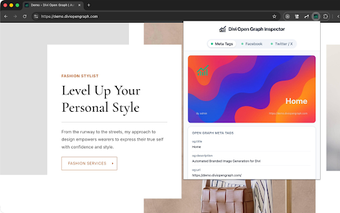 Divi Open Graph Inspector เป็นส่วนขยาย Chrome ฟรีที่ออกแบบมาเพื่อช่วยให้ผู้ใช้ตรวจสอบและแก้ไขปัญหา Open Graph meta tags บนหน้าเว็บใดก็ได้ เครื่องมือนี้มีประโยชน์โดยเฉพาะสำหรับนักพัฒนาเว็บ, ผู้เชี่ยวชาญด้าน SEO, และผู้จัดการเว็บไซต์ที่มุ่งหวังที่จะปรับแต่งวิธีที่เนื้อหาของพวกเขาปรากฏบนแพลตฟอร์มโซเชียลมีเดีย ด้วยฟีเจอร์การตรวจสอบเพียงคลิกเดียว ผู้ใช้สามารถดู Open Graph tags ที่สำคัญเช่น og:title, og:description, และ og:image ได้อย่างง่ายดาย ช่วยให้สามารถระบุปัญหาที่อาจส่งผลต่อการแสดงตัวอย่างเนื้อหาเมื่อแชร์บนเครือข่ายสังคมได้อย่างรวดเร็ว